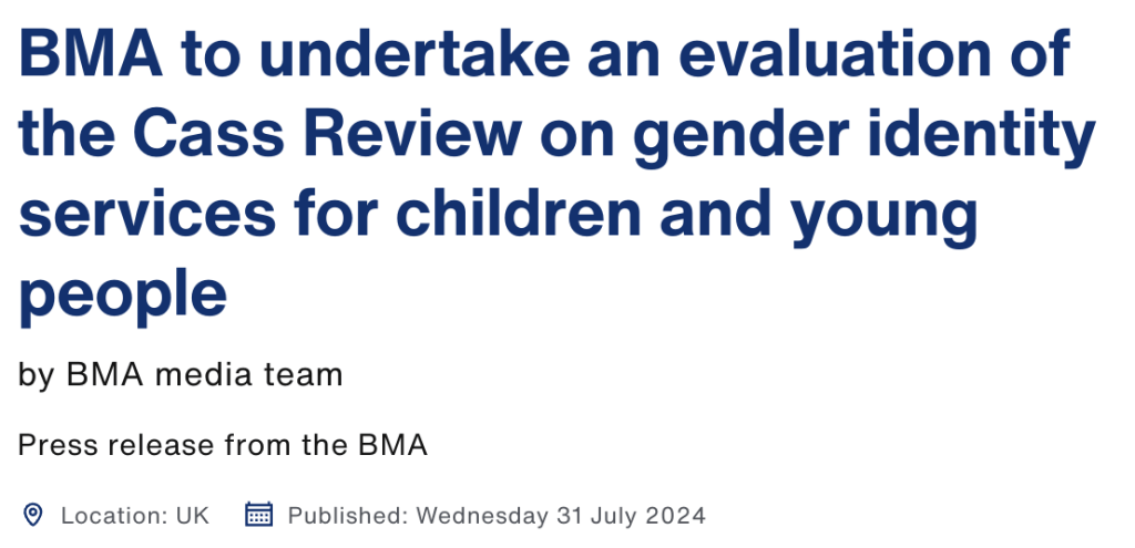 We are extremely disappointed that the BMA Council has passed a motion to conduct a “critique” of the Cass Review and to lobby to oppose its recommendations.